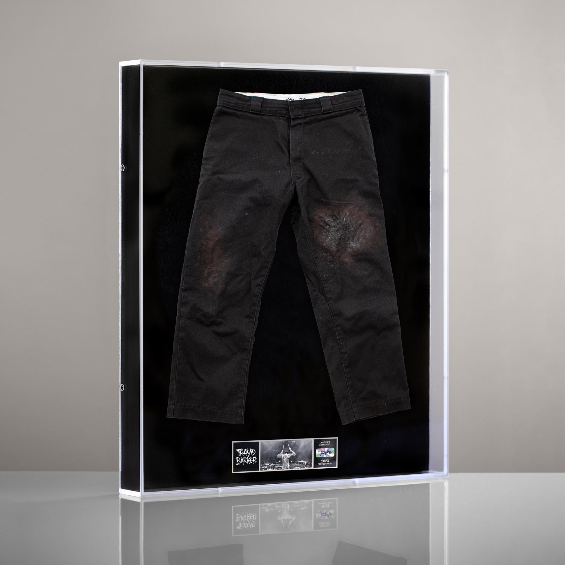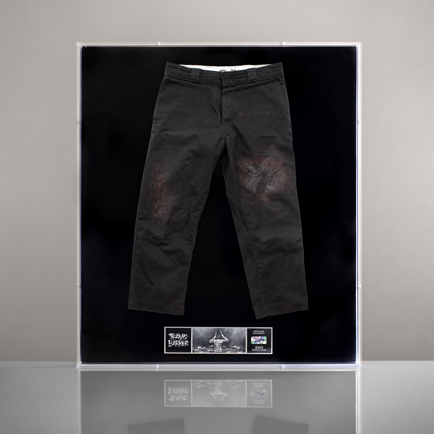 This is your once in a lifetime chance to own Travis' blood soaked pants worn on October 16, 2023 in Manchester UK on his 2023 World Tour. This piece comes ready to display in a museum-grade acrylic Trophy Case.